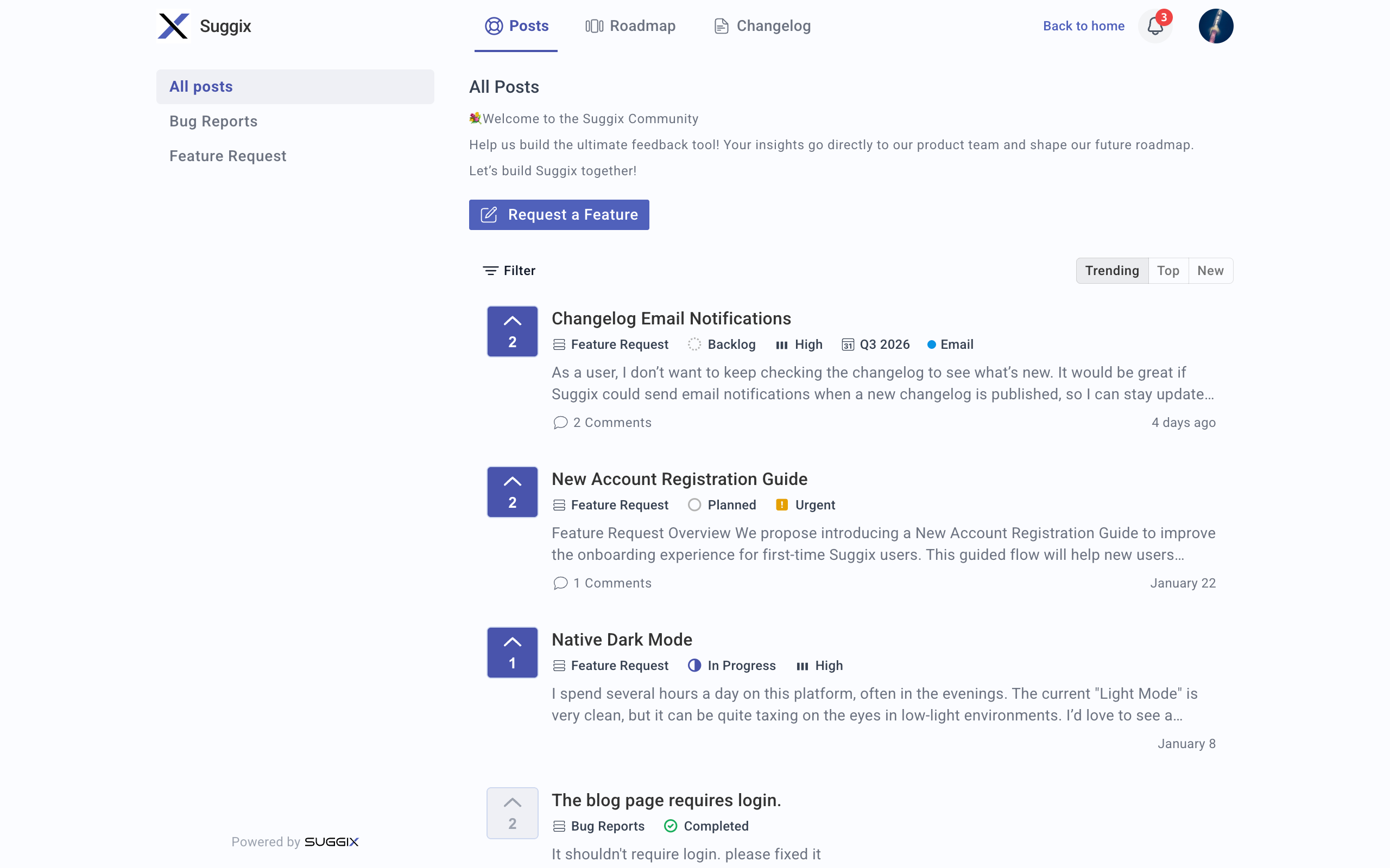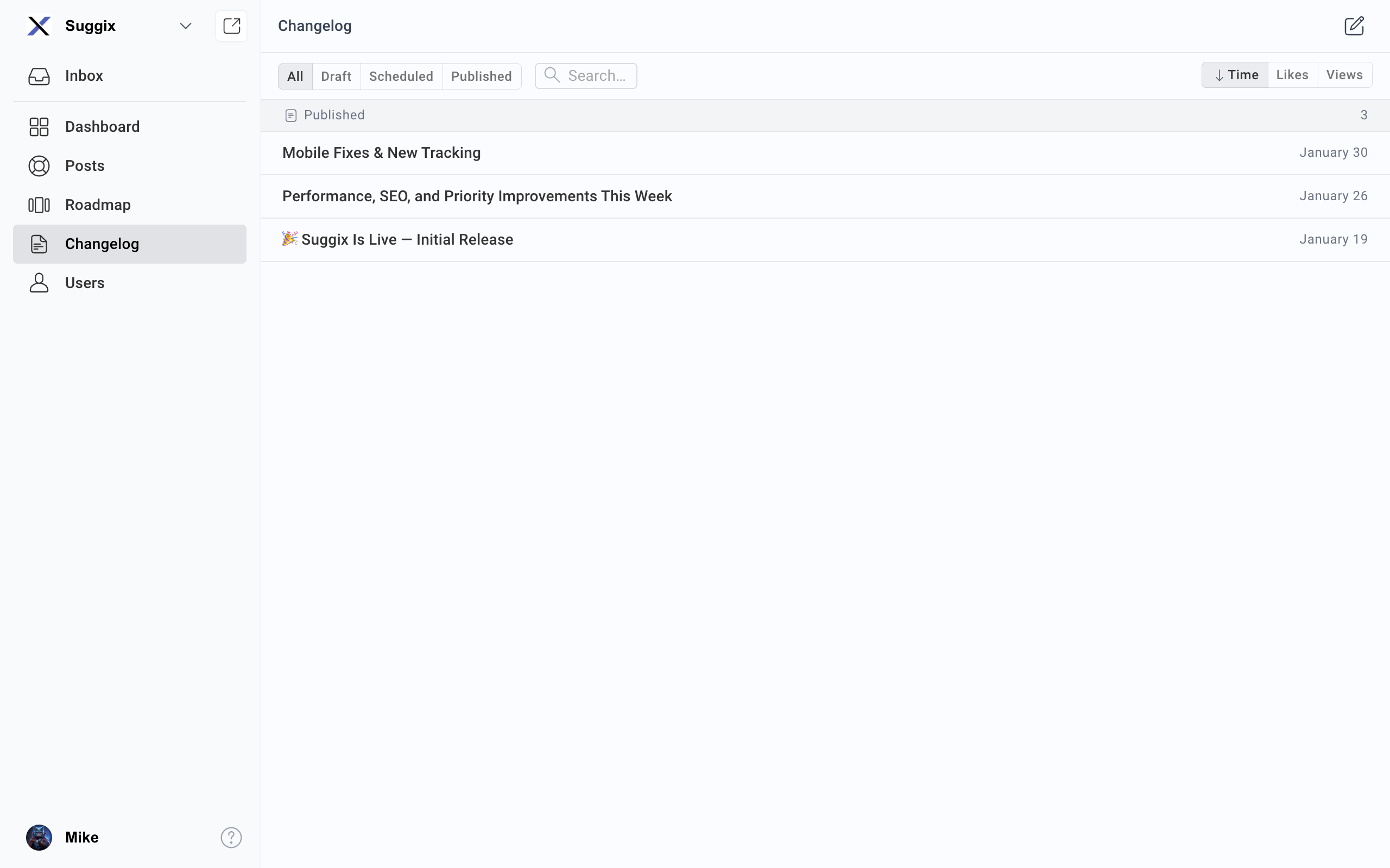 Instead of juggling separate systems for feedback, tasks, roadmaps, and announcements, Suggix brings everything into a single, coherent workflow. Every piece of user input can flow naturally from idea to execution to release, without losing context along the way.